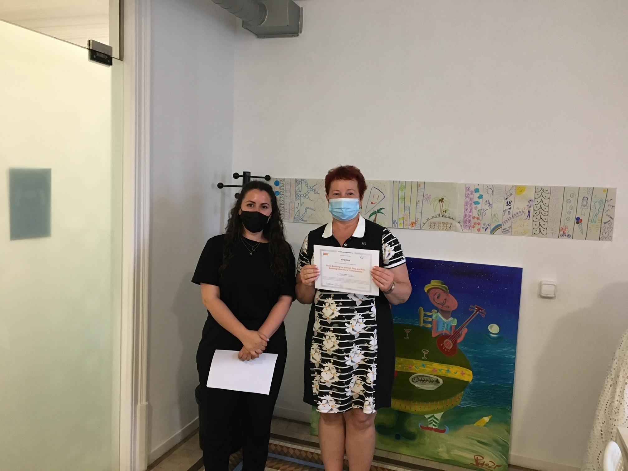 4) Osalemine kursusel "TEAM BUILDING FOR SCHOOL: PLAY AND FUN, BUILDING EDUCATORS COMMUNITIES" ("Kooli meeskonna loomine: mäng ja lõbu, harivate kogukondade loomine."). 14. - 19. juuni 2021, Barcelona, Hispaania. Osales koolijuht Virge Ong.