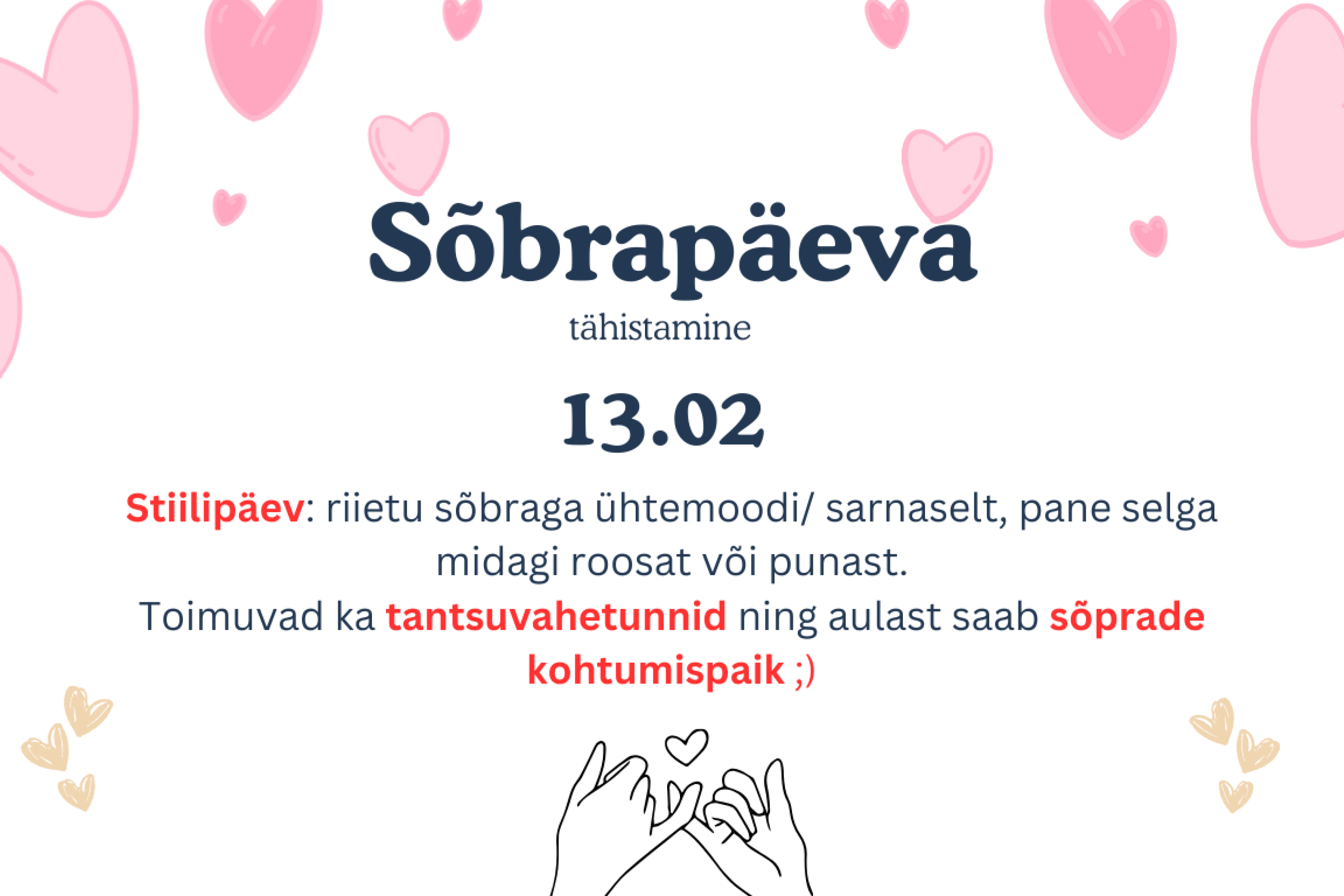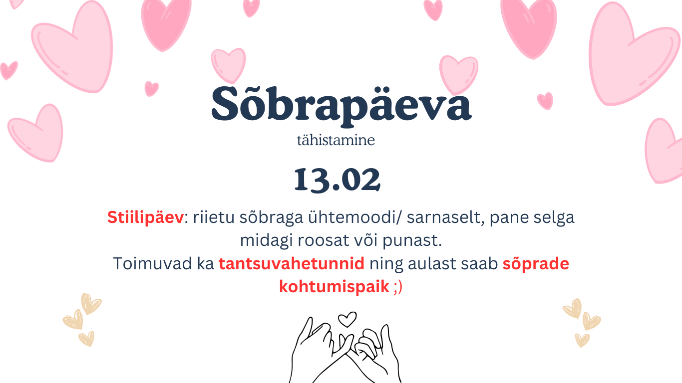 Stiilipäev: riietu sõbraga ühtemoodi/ sarnaselt, pane selga midagi roosat või punast.
